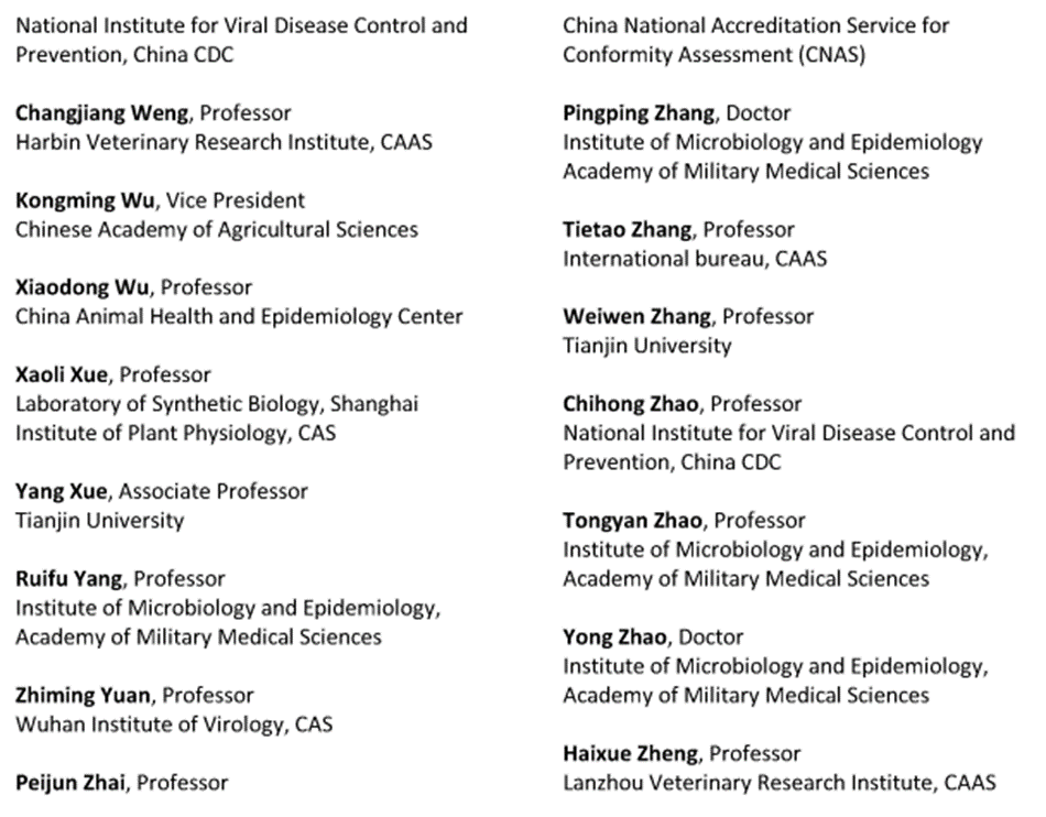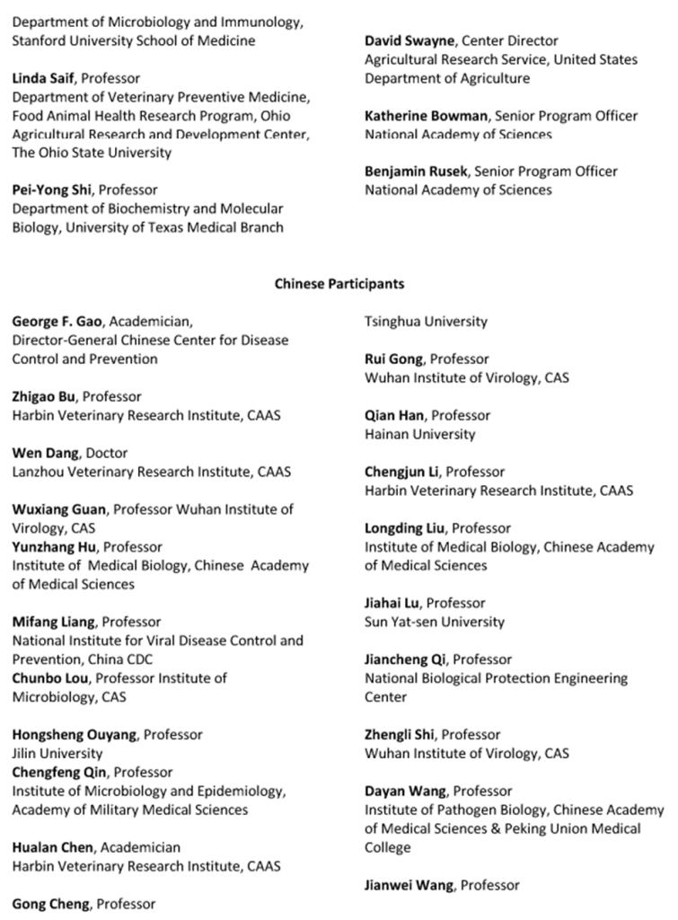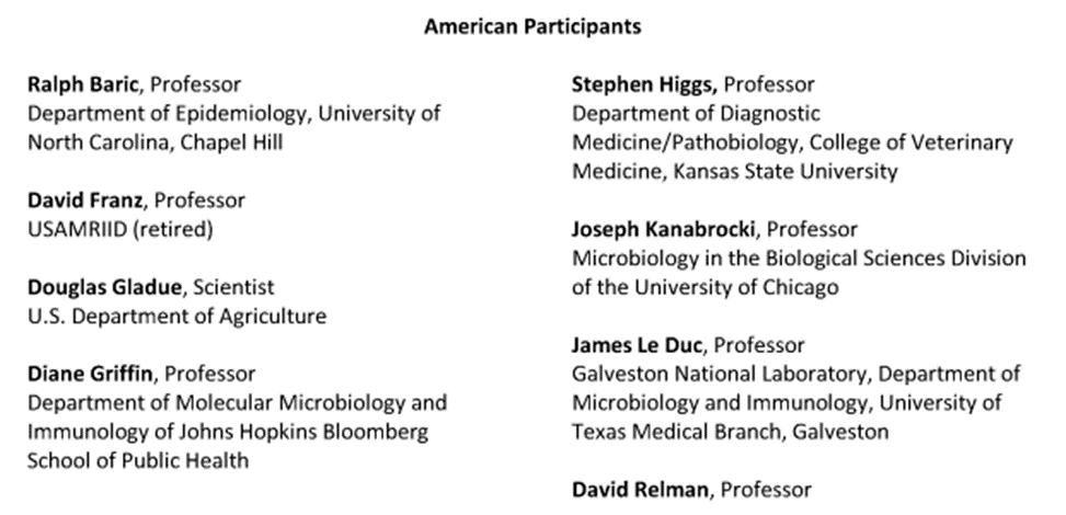 According to the National Academies of Sciences: Since 2015, the National Academies of Sciences has organized a series of meetings on the challenges of emerging infections, laboratory safety, and global health security with the Chinese Academy of Sciences (CAS), Chinese Center for Disease Control and Prevention (CCDC), and other Chinese life science and public health organizations. Academy members and other top-flight American researchers in human and animal virology and immunology participated, including current and former directors of BSL-4 laboratories, former CDC, and former uniform military biodefense experts. They have met with China’s BSL-4 laboratory directors and researchers from top universities and research centers across China. The topics discussed included basic and applied research on infectious diseases; the challenges of combating emerging infections; life-science collaboration and research-data sharing; high-containment biological laboratory management, safety and security; and responsible conduct in the use of gene editing in infectious disease research.